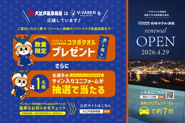 大江戸温泉物語グループ×V・ファーレン長崎!オリジナルコラボタオル&サイン入りユニフォームプレゼントキャンペーン!