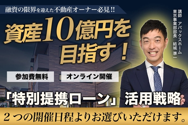【無料オンラインセミナー】 融資の限界を迎えた不動産オーナー必見!“資産10億円”を目指す! 「特別提携ローン」活用戦略