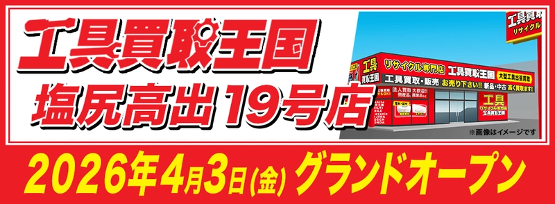 工具専門店の『工具買取王国』が長野県塩尻市に塩尻高出19号店を4月3日(金)にグランドオープンいたします。働く職人さんを応援いたします!