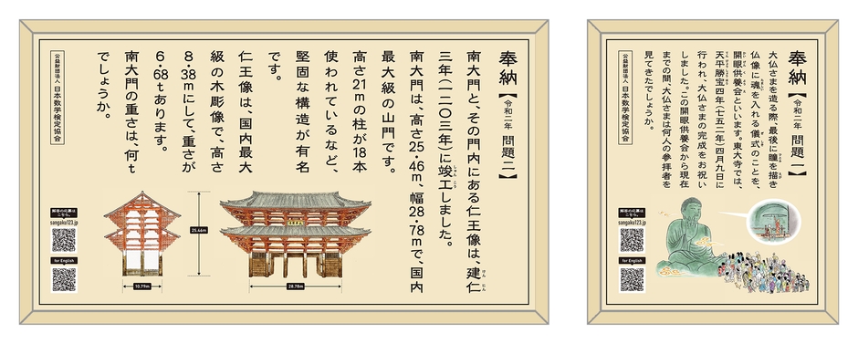 1月23日は「算額文化を広める日」 数学の額「算額」を東大寺に6度めの奉納 今年は大仏さまと南大門にちなんだ2問を出題