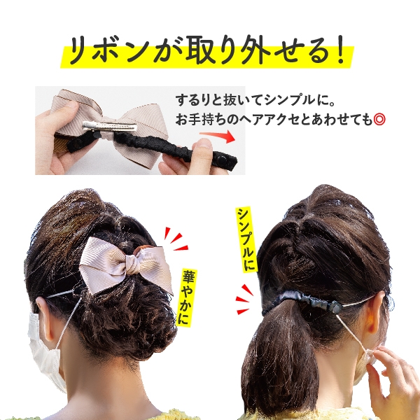 お洋服のコーディネートに合わせてするりと抜いてシンプルにも使用できるのでお手持ちのヘアアクセとあわせてもOKです。