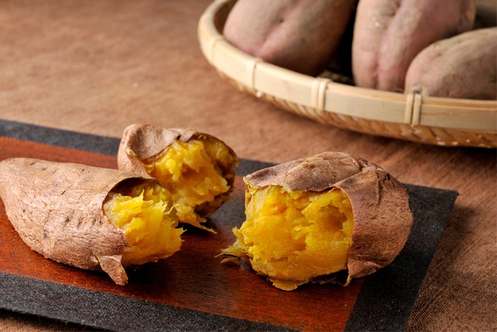 種子島産の安納いもは、非常に甘みが強く、輝く黄金色たっぷりの水分が特徴で、スプーンですくえるほどの柔らかさです。