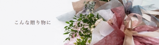 花束に使⽤しているのは艶やかな造花やプリザーブドリーフなので、ギフトを渡す⽇に合わせる必要がなく、