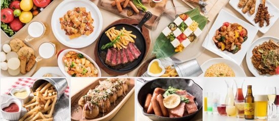 焼きそば、たこ焼き、ガパオライス、鶏の唐揚げ、焼き鳥、串カツ、枝豆 など