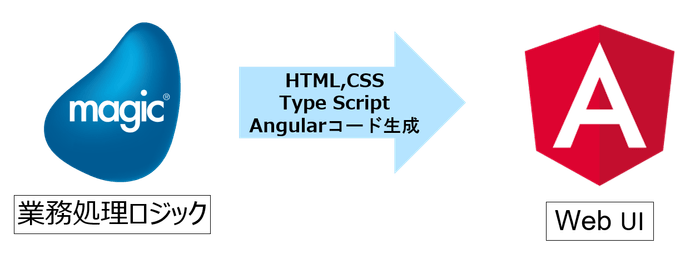 Magic xpa Web Clientは、ローコード開発ツール「Magic xpa」で開発した業務アプリケーションのリポジトリ情報をもとに、Angularコード(HTML5、CSS3、TypeScript)を自動生成することで、SPA型のアプリケーション開発効率を飛躍的に高めることができる最新テクノロジーです。