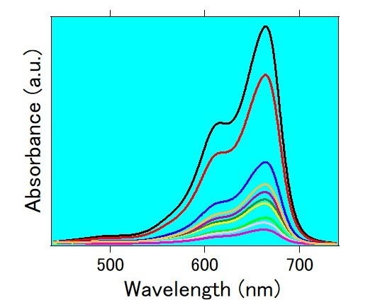 この度、当社の研究員である小日向 務博士(生命科学)と森 良平博士(工学)は、メタルハライドランプの照射下において、メチレンブルー水溶液中のメチレンブルーを、光触媒分解するMOFを合成しました。従来のTiO2などの光触媒材料では太陽光の3~4%にすぎない紫外光しか利用できないため、水から水素への太陽光エネルギー変換効率が低いという問題があります。また可視光応答型光触媒としてWO3も有効ですが、タングステンは資源リスクに加え高コストであるという問題があります。現状、MOFの合成や応用はいずれも研究開発段階ですが、人為的にMOFの規則的な構造、表面官能基などを設計、制御できるので、触媒活性の詳細を解析することによってより良い触媒性能が得られる可能性を秘めています。