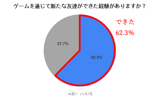 6割(62.3%)がゲームを通じて新たな友人ができたと回答。