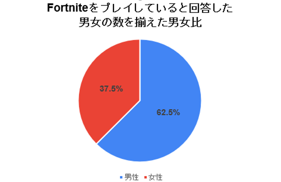 - Fortniteを好きと答えた男女比は約6:4