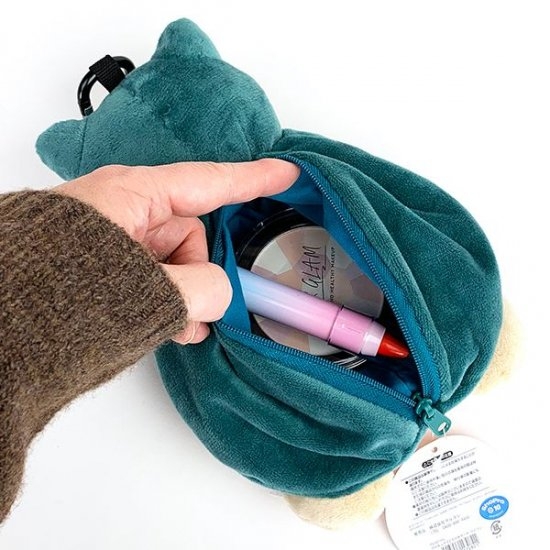 こちらもゆるさが人気の、カビゴン。小物入れにもなるぬいぐるみで、背中の部分のファスナーの開閉で、中身を出し入れできちゃいます。上部にはカラビナも付いていて、マスコットとしてもご利用いただけます。