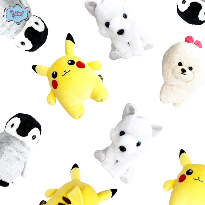 みんなのアイドル、ピカチュウのぬいぐるみも入荷しました。もっちもちな弾力と手触りが魅力で、フラットなフォルムはクッションにも最適です。