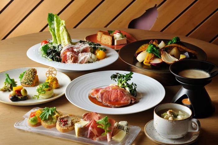 リゾナーレ各施設には、素材を活かしたシェフこだわりのテイクアウトやビュッフェの食事があります。特にビュッフェレストランでは子どもと一緒でも安心して利用できるように、子ども用のイスやカトラリーを用意しています。例えば、リゾナーレ那須の「SHAKI SHAKI(シャキシャキ)」は、太陽の光をたっぷりと浴びたみずみずしい野菜を味わえ、家族でも安心して利用できるビュッフェレストランです。