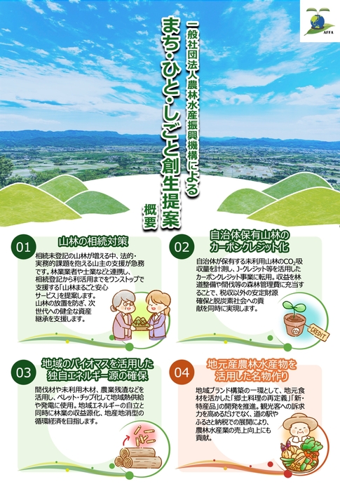株式会社日本遮蔽技研の創業者・平山 貴浩が令和6年6月に設立および代表理事に就任したAFFA一般社団法人農林水産振興機構は、約1年をかけ、まち・ひと・しごと創生(地方創生)を実現するための10の事業企画をまとめました。