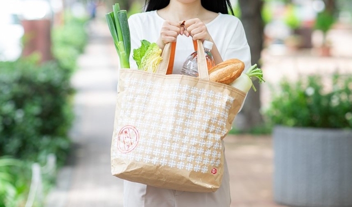 重い荷物を入れても大丈夫な「オリジナル米(マイ)袋バッグ」は、肩掛けはもちろん、手提げとしてもお使いいただけるサイズ感。普段のお買い物に活躍いたします。