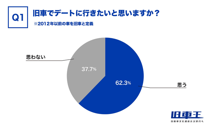 まず旧車でデートに行きたいと思うかどうか、旧車乗りの皆さんに聞いてみたところ、思うと答えた方が62.3%という結果になりました。
