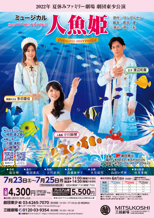 アンデルセンの名作を元モーニング娘。 小川麻琴ら豪華キャストで贈る 2022年夏休みファミリー劇場 劇団東少公演 ミュージカル『人魚姫』上演決定 カンフェティでチケット発売