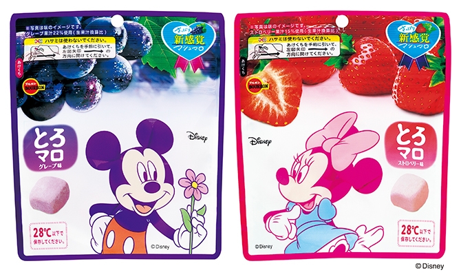 ミッキーマウスデザインのグレープ味はグレープ果汁を生換算22%、またミニーマウスデザインのストロベリー味はストロベリー果汁を生換算15%使用し、甘酸っぱい味わいと果汁の美味しさがお楽しみいただけます。