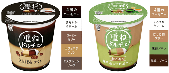 『重ねドルチェ caffe(カッフェ)づくし』 『重ねドルチェ 和の奏で 抹茶&ほうじ茶プリン』 2020年3月31日(火)、4月14日(火)より全国にて新発売