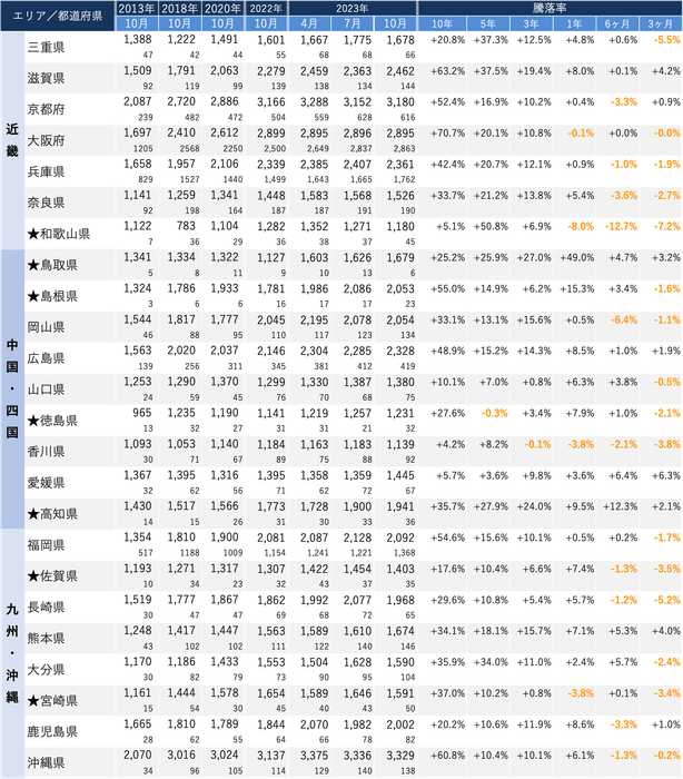 ※2023年10月の件数が50件未満の県については、算出根拠となるデータ数が少ないため★をつけて掲載。