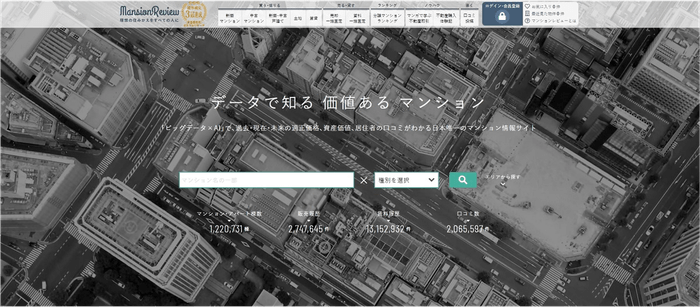 当社が2010年より運営しているマンション情報サイト。全国約15万3千棟の物件の概要のほか、『クチコミ』『適正相場』『資産価値』もわかる情報サイトで、年間訪問ユーザー数は約1,700万人(2022年)。登録会員数は2023年10月に69万人を突破いたしました。