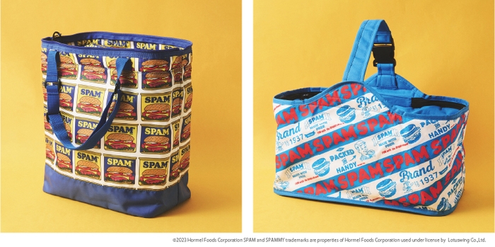 スパム缶のイラストがデザインされたポップなデザインが目を引く大容量保冷バッグ。マチが広くて大きいお弁当箱もすっぽり入るので、夏の行楽や普段のお買い物にも大活躍。ハリがあるしっかりとした生地なので、自立し中身も詰めやすく使い勝手抜群です。