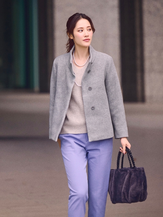 襟は二重でふっくらとしたデザインスタンドにしており、小顔効果が期待できます。