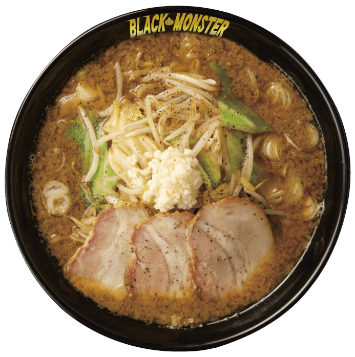 麺はモチモチ食感のオリジナル新特製太麺を使用。これまでとまた違った新しいブラックモンスタースープとの相性を実現しました。またシリーズ5作目の今回は新たな試みとして炭火で燻した香ばしいチャーシューが新たに加わります。