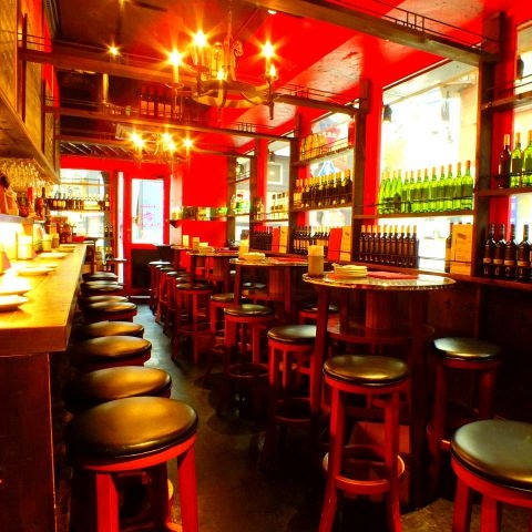 『スペインのちょっと居酒屋 バルマル 赤坂見附店』の店内には、ラテン音楽が流れています。赤を基調とした明るい店内は、まさに「情熱のスペイン」という気分を味わえる空間です。