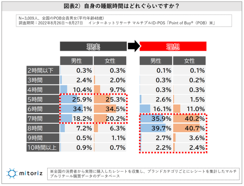 ※本プレスリリースのPDF版はこちらから>>睡眠時間の現実と理想220913