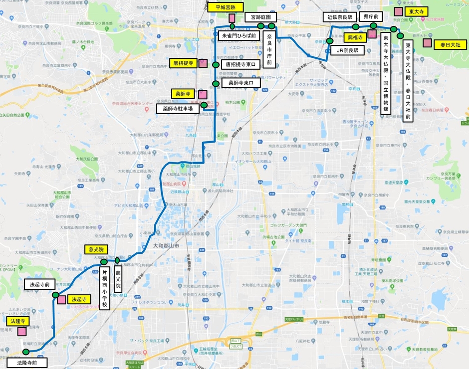 朱雀門ひろば前~法隆寺前 640円