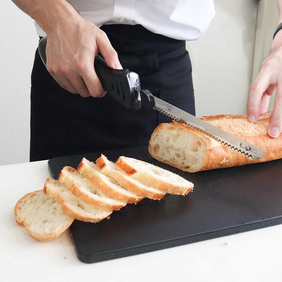 焼きたての食パンでもつぶれず薄く美しくカットができる『充電式コードレス電動肉&パン切り包丁「エレクトリックナイフ」』を発売開始