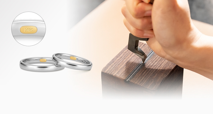 全国にジュエリー店舗を展開するオーダーメイド企業の株式会社ケイ・ウノ(本社:愛知県名古屋市、代表取締役:久野雅彦、以下「ケイ・ウノ」)は、結婚指輪の内側に、入籍・結婚記念の年である「2020」を刻印するサービスを1月17日(金)から、全国のケイウノ店舗で提供します。自分の手で純金プレートに刻印を打ち、その後、職人が象嵌と呼ばれる伝統技法で指輪の内側にセットして仕上げます。