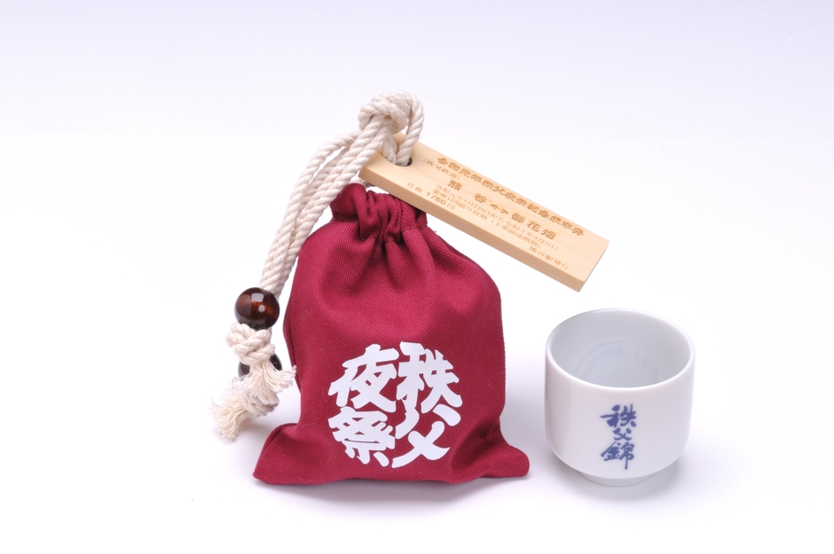本年の「秩父夜祭記念乗車券」は、木札乗車券・山車曳き子の祭半纏(まつりはんてん)と引き綱をモチーフにした巾着袋・特製ぐい呑みをセットにした特別仕様になっており、記念乗車券でよりお祭り気分を味わうことができます。