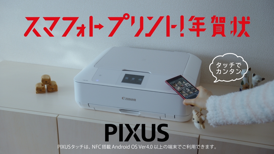 新しいPIXUSのCMコンセプトは、「年賀状も、スマフォトプリント」。