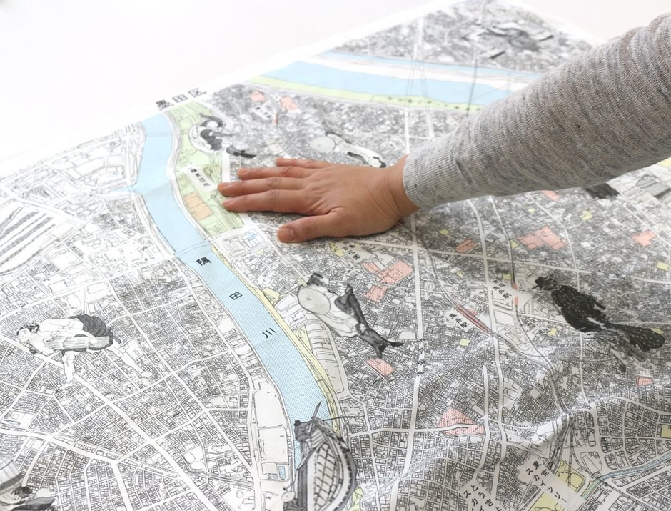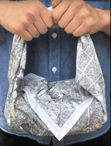 避難経路、避難場所などが記載されている防災マップが日常的に活用されていない点に着目し、超撥水・難燃性の布を使った風呂敷に防災マップを印刷。日常で風呂敷として使いながら、非常時は避難の道しるべとなるほか、超撥水性を生かしてバケツになったり、難燃性を生かして火の粉から身を守ったりすることができます。防災情報だけではなく、観光・文化資源も記載し地域の魅力を詰め込みました。