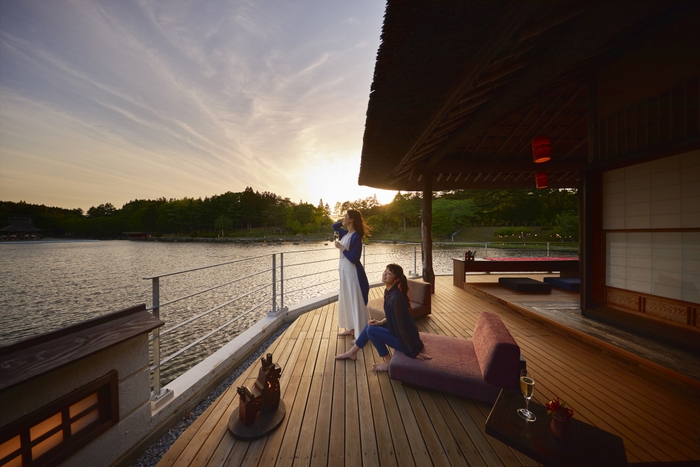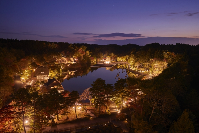 「のれそれ(*青森の方言で目一杯の意味)青森~ひとものがたり」をコンセプトに、青森の祭りや方言などの文化を満喫できる温泉宿。約22万坪の敷地内には、池や古民家の点在する公園もあり、食事や多彩なアクティビティを楽しむことができる。