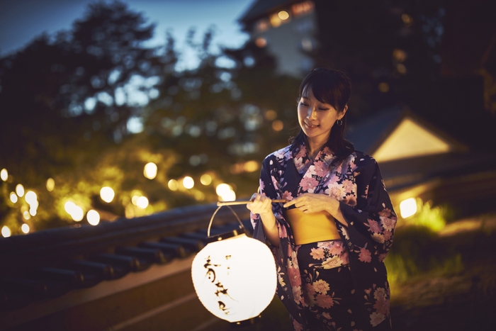 青森の文化を満喫できる宿「星野リゾート 青森屋」では、2020年7月1日から11月29日までの間、疫病払いの神「鐘馗(しょうき)」のねぶたを敷地内にある公園の池に浮かべ、無病息災を祈る「疫病払い灯篭」を実施します。ねぶたの光が水面に映る幻想的な景色を、足湯や八幡馬(やわたうま)ラウンジで寛ぎながら眺められます。