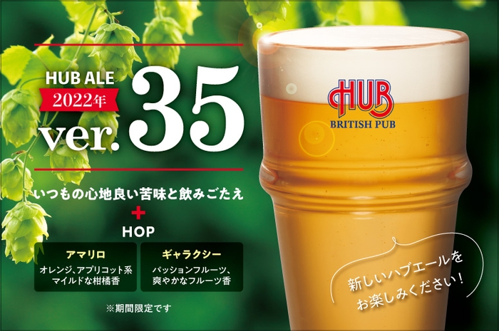 この度、株式会社ハブ(本社:東京都千代田区、代表取締役社長:太田 剛)は、HUB全店にて、季節限定プレミアムエールの『HUB ALE』の新バージョンである『HUB ALE Ver. 35』を5月下旬より順次、販売を開始いたします。(店舗によって販売開始時期が異なります。詳細は店舗へお問い合わせください。)