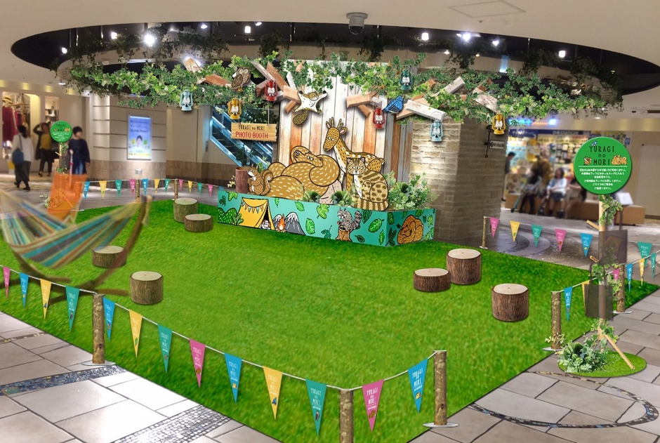 吉祥寺の持つナチュラル、リラックス、グリーンといったイメージから、夏休みの親子連れや吉祥寺の街に遊びに来る方が楽しめるスポットとして、B1Fゆらぎの広場に「森」をイメージした「ゆらぎのもり」を設置し、吉祥寺に集う方に夏休みの思い出のひとときを提供いたします。館内にいながらまるで森でキャンプしているかのような気分で過ごしていただけます。