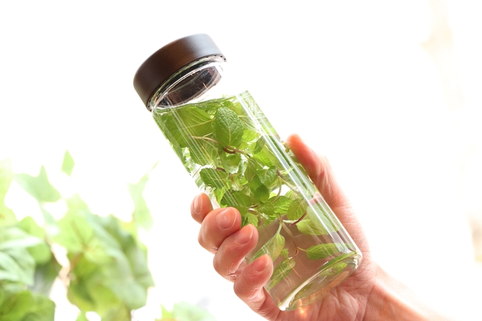 森の心身調律では、「軽井沢星野エリア ハルニレテラス」内にある「ココペリ」が考案したオリジナルドリンクを提供します。静の心身調律は、運動後に飲む、野菜や果物が入ったグリーンスムージー、動の心身調律は、運動中に喉を潤す、ミントが入ったハーブウォーターです。