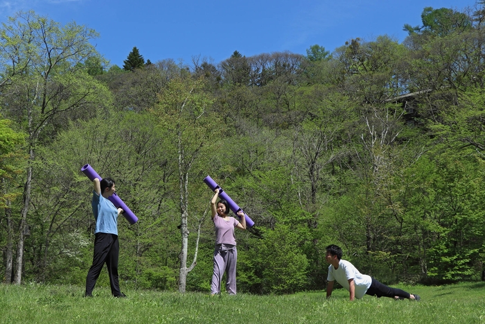 軽井沢星野エリアの日帰り温泉「星野温泉 トンボの湯」は、2020年7月4日〜8月30日の土・日曜日に「軽井沢 森の心身調律」と題したフィットネスプログラムを開催します。「軽井沢 森の心身調律」は、森の中で行うフィットネスと温泉入浴を組み合わせたプログラムです。「静」と「動」の2つの心身調律があり、健康的な生活を送りたいと願う人々を対象にしています。