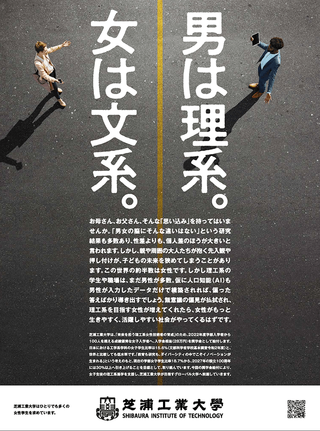 今回の広告で、理工系分野に進む女性が増える社会を目指すことを広く表明します。