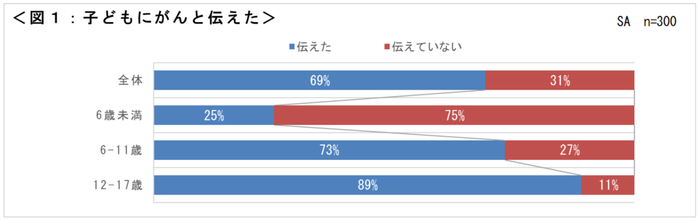 ・子どもの年齢が高い、または女の子をもつがん治療中の方は、がんと伝えたことが多い。<図1>