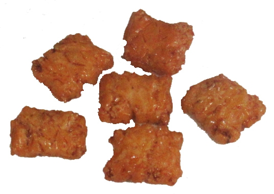 ザクザクと心地良い食感のひとくちあられです。ピリッと唐辛子を効かせたサラダ味に仕上げ、ピーナッツをアクセントに加えました。国産のもち米を用いるとともにザクザクの食感にこだわりました。