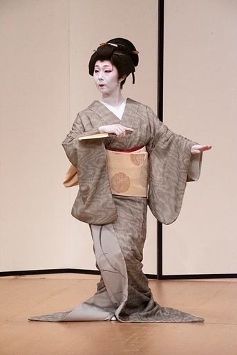 元来小さな空間で屏風を背に燭台の灯りの中、静かに舞われていたことから、少ない動きの中に人の苦悩や哀しみを内に秘め繊細に表現するため、動きの多い歌舞伎舞踊とは一味違った趣があります。