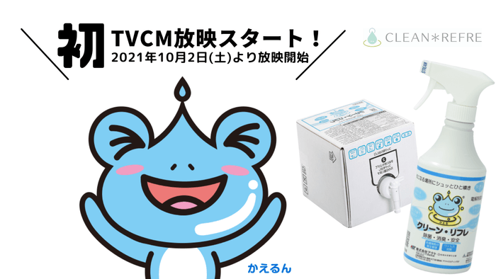 株式会社武蔵野(本社:東京都小金井市、代表取締役社長:小山 昇)は、2021年10月2日より、水と塩から作られた次亜塩素酸水「クリーン・リフレ」 のプロモーションとして、TVCMを関東圏で放送開始します。日常の感染症対策が当たり前となり市場にたくさんの除菌商品があふれている情勢を踏まえ、皆様に安心安全な除菌水を手に取ってもらうべく作成された本CMでは、クリーン・リフレの公式キャラクター“かえるん”が商品のご案内をしていきます。