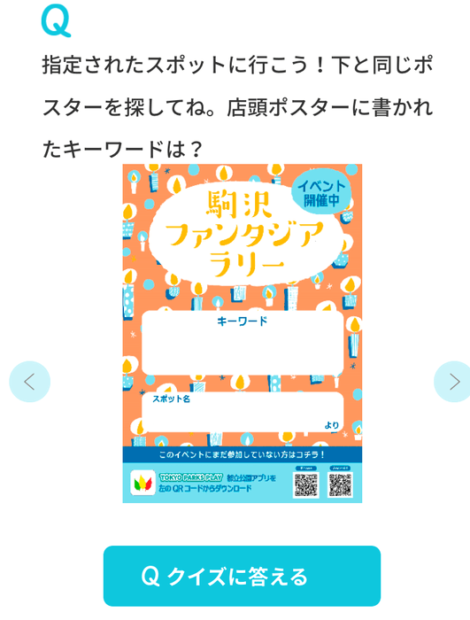 都立公園アプリ「TOKYO PARKS PLAY」をダウンロードしてクイズや動画、リアルで世田谷地域とつながりましょう。高得点スポットは世田谷エリア以外にもあり、オンラインで巡れるスポットもあるので、お家でも楽しめます。