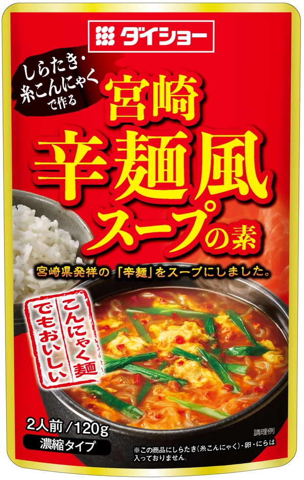 株式会社ダイショー(本社:東京都墨田区、取締役社長COO:阿部 孝博)は、2019年春夏の新製品として『しらたき・糸こんにゃくで作る 宮崎辛麺風スープの素』を2月1日(金)より全国で発売しました。