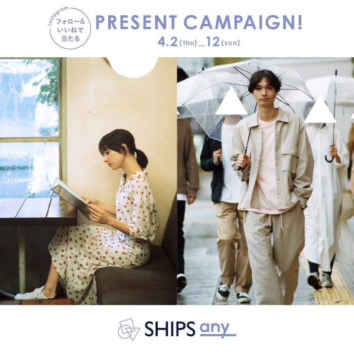 株式会社シップス(代表取締役社:三浦 義哲、東京都中央区)から、この春デビューした新ブランド“SHIPS any〈シップス エニィ〉”は、Instagramプレゼントキャンペーンを4月2日~12日まで開催いたします。