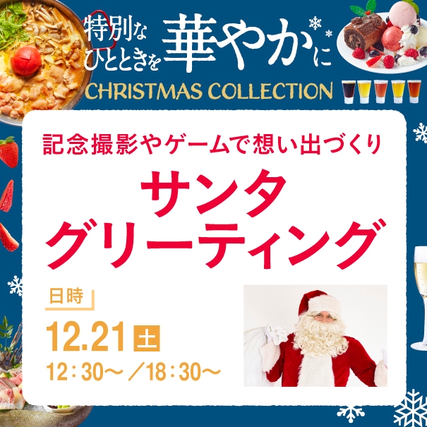 大阪梅田にある商業施設、阪急32番街 空庭Diningではクリスマスを盛り上げるクリスマスコレクションを開催いたします。夜景を見ながらロマンチックなクリスマスを過ごしませんか?期間中はうれしいイベント盛りだくさん!忘年会メニューもご用意しております!