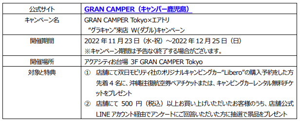 エアトリが、双日グループが運営するアクアシティお台場の "GRAN CAMPER Tokyo"にて共同キャンペーンを開始!! | NEWSCAST